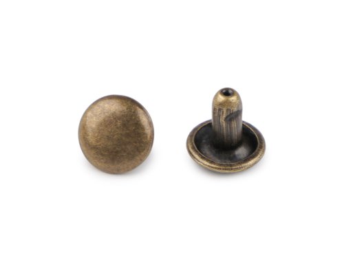 Oboustranné kovové nýty se skládají ze dvou částí. K jejich aplikaci je potřeba piston a lis, který najdete pod kódem 070241 nebo 790770. Nýty využijete k výrobě kabelek, opasků, peněženek apod. Neslouží pouze jako ozdoba, ale jedná se o nýty, kterými můžete upevnit vrstvy materiálu k sobě.