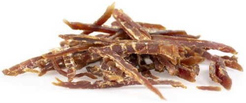 Složení: maso a výrobky živočišného původu (90 % kachní prsa), vedlejší výrobky rostlinného původu, oleje a tuky, bílkovinné extrakty rostlinného původu, minerální látky. Analytické složky: hrubý protein 42 %, hrubý tuk 1 %, hrubá vláknina 2 %, hrubý popel 2 %, vlhkost 22 %. Doplňkové látky: konzervanty povolené EU Krmný návod: Podávejte jako odměnu či pamlsek. Není určeno pro štěňata do 6 měsíců. Zajistěte psovi vždy dostatek pitné vody. Není určeno pro lidskou spotřebu. Uchovávejte v suchu a chladu. Nevystavujte přímému slunečnímu světlu.