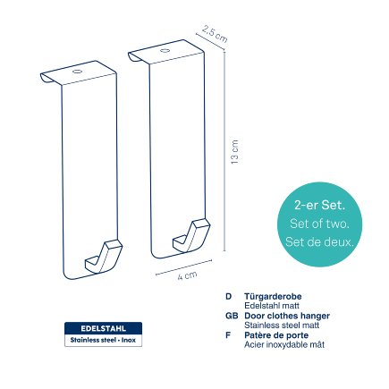Dveřní věšák jednohák Colgar nerezová ocel stříbrná matná sada 2 ks 13,0x4,0x2,5cm KL-22227