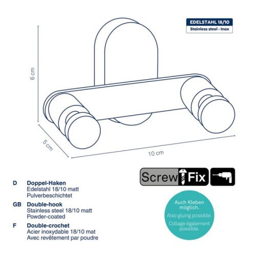 Nerezová ocel 18/10 práškově lakovaná matná 14,5x7,5cm 12,5cm v