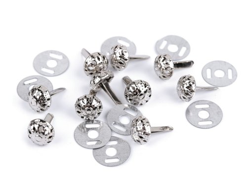 Dvounožkové hřeby s ozdobnou filigránovou hlavičkou využijete jako ochranu dna kabelky, tašky nebo batohu, ale i jako ozdobu (kabelek, tašek, opasků apod.). Hřeb připevníte jednoduše, stačí ho jen vložit do otvoru, přes nožky navléct plíšek a obě nožky hřebu rozevřít do stran. Jedna sada obsahuje 1 hřeb a 1 plíšek. Rozměry č. 1: - délka hřebu: 17 mm - průměr hlavičky: 10 mm - průměr plíšku: 13 mm