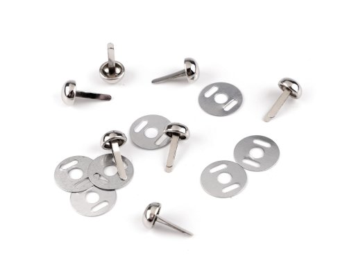 Dvounožkové hřeby využijete jako ochranu dna kabelky, tašky nebo batohu, ale i jako ozdobu (kabelek, tašek, opasků apod.). Hřeb připevníte jednoduše, stačí ho jen vložit do otvoru, přes nožky navléct plíšek a obě nožky hřebu rozevřít do stran. Jedna sada obsahuje 1 hřeb a 1 plíšek. Rozměry: - délka hřebu: 15 mm - průměr hlavičky: 8 mm - průměr plíšku: 13 mm