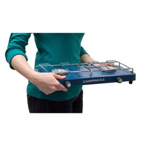 Jednoduchý dvouplotýnkový vařič. Dva oddělené výkonné hořáky. Pracuje na běžnou 10 kg nebo 2 kg PB lahev. Výkon hořáků: 2 x 1600 W;Doba varu: 7,30 min.;Spotřeba: 2x116 g/h;Doba provozu na PB lahev: R907 - 12 hodin 30 min; 2 kg - 9 hodinRozměry: 43 x 24 x 7,5 cm;Hmotnost: 1,4 kg;Zdroj energie: PB lahev 5 kg nebo 10 kg, nebo R907 s regulátorem Campingaz; Pracuje na běžnou 10 kg PB lahev, pro připojení na 2 kg PB lahev je nutné zakoupit odtlačný ventil;Pozor, použijte prověřenou připojovací sadu včetně regulátoru tlaku;Připojovací sada na PB lahev není součástí výrobku, prodává se zvlášť;