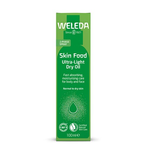 Dvousložkový suchý olej v sobě spojuje lehkost hydratační mlhy s výživou rostlinných olejů a extraktů z violky, organického měsíčku, rozmarýnu a heřmánku. To vše je doplněno o nezaměnitelnou vůni pomeranče, benzoe a levandule. Co umí Ski Food Ultra-Light Dry Oil od Weledy: