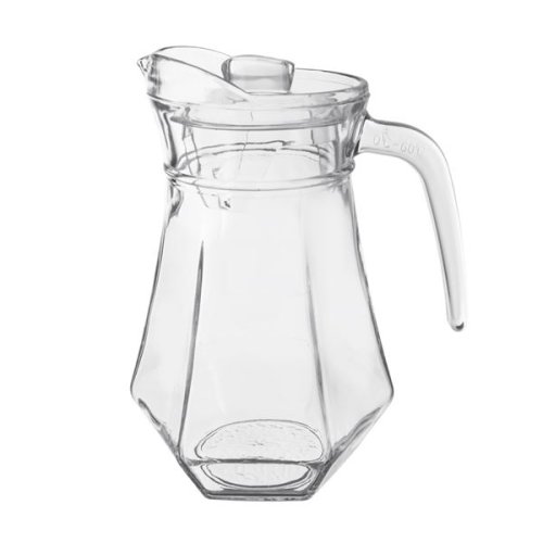 • Designový skleněný džbán s plastovým víčkem je praktickým a stylovým doplňkem pro přípravu i servírování studených nápojů