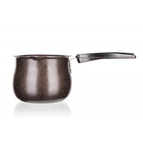 Džezva GRANITE Brown slouží pro přípravu pravé arabské nebo turecké kávy. Díky džezvě vyrobíte kávu neopakovatelné chuti a vůně. Držadlo je vyrobené z plastu a tělo z uhlíkové oceli s nepřilnavým povrchem. Džezva je určena pro rychlou přípravu nápojů, tenké stěny přenáší rychle teplo.