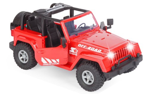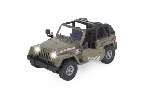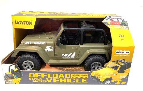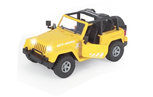 Džíp v měřítku 1:10 představuje detailně propracovaný model terénního vozidla, který je k dispozici ve třech barevných variantách – červené, žluté a khaki zelené. Vozidlo je navrženo s důrazem na realismus, což dokládají otevírací dveře, robustní konstrukce a výrazné terénní pneumatiky, které podtrhují jeho off-road charakter. Interiér džípu je černý a detailně zpracovaný, doplněný o volant a sedadla, což přispívá k celkovému dojmu skutečného terénního auta.