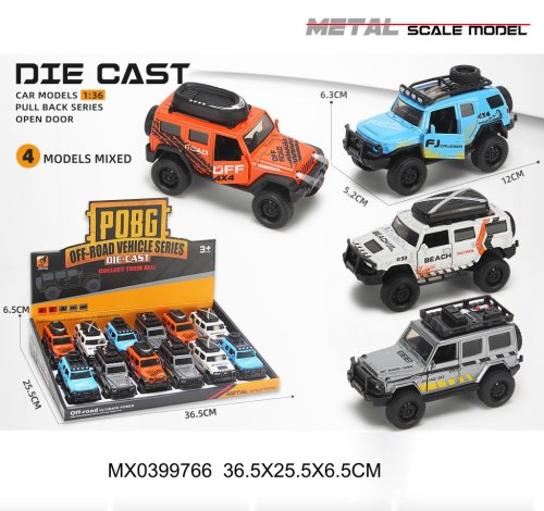 Džíp off-road 1:36 je skvělý kovový model auta pro malé nadšence do terénních vozidel! Tento model nabízí spoustu zábavy a detailní zpracování, které potěší jak děti, tak sběratele.