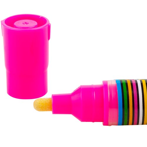 - Snadné smazání: Po zaschnutí se náplň změní na křídu a lze ji snadno setřít suchým hadříkem. Žádné šmouhy a zbytky barvy!