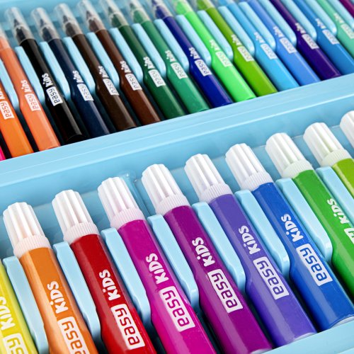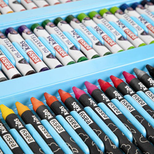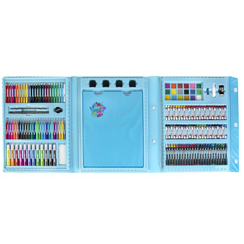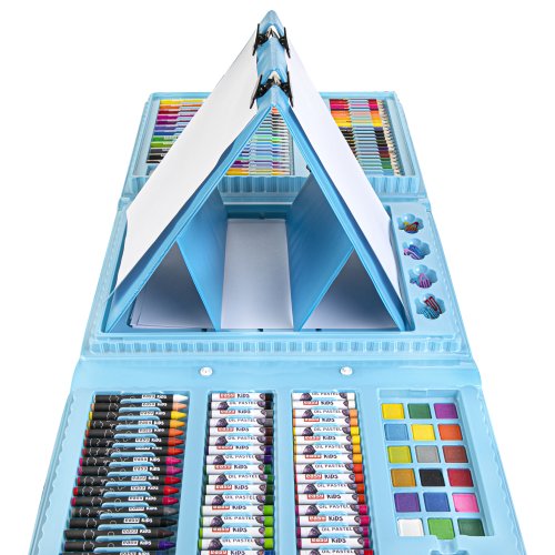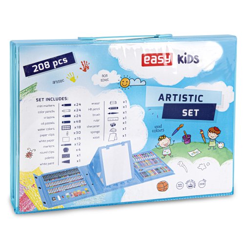 Tato sada je snem každého malého umělce. Modrý kufřík se stojanem ukrývá 208 kusů výtvarných potřeb, se kterými se váš syn, vnuk nebo synovec ponoří do světa fantazie a barev.