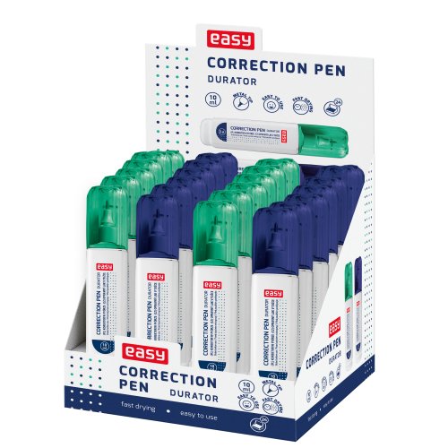 S korekčním perem EASY DURATOR snadno a čistě opravíte text napsaný propiskou, linerem nebo gelovým perem. Přesná a tenká koncovka umožňuje korekci i jednotlivých písmen či znaků s maximální precizností. Korekční kapalina rychle schne a dobře kryje, takže můžete ihned psát nový text.
