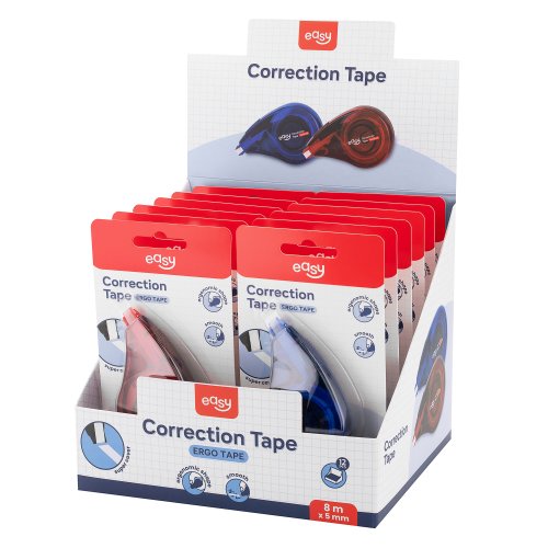 EASY ERGO TAPE Korekční strojek, 5 mm x 8 m, 12 ks v balení, červený-modrý