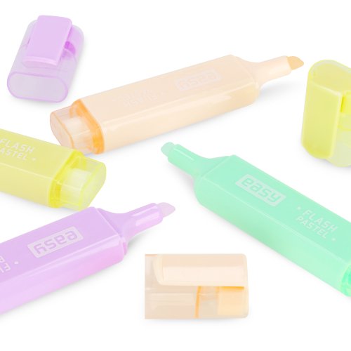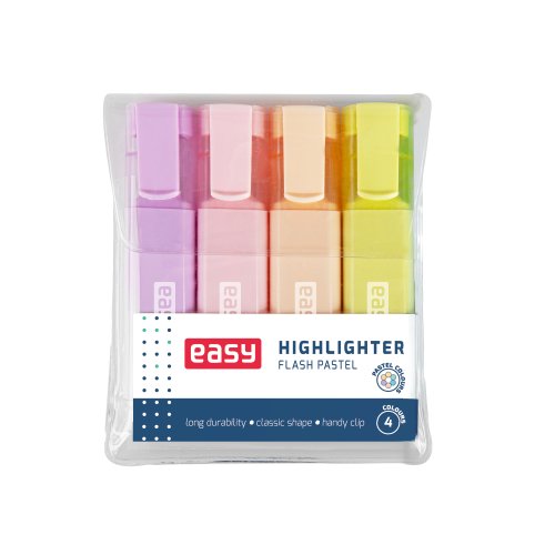 Zvýrazňovače EASY FLASH PASTEL jsou vhodné pro všechny druhy papíru, od sešitů po učebnice a snadno se čistí z většiny povrchů.