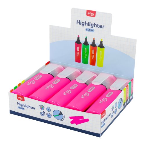 Plochý tvar a ideální tloušťka zvýrazňovače EASY FLASH zaručují pohodlné držení. Víčko zabraňuje vysychání náplně a chrání před znečištěním. A díky klipu na víčku můžete zvýrazňovač jednoduše připevnit k sešitu nebo knize.