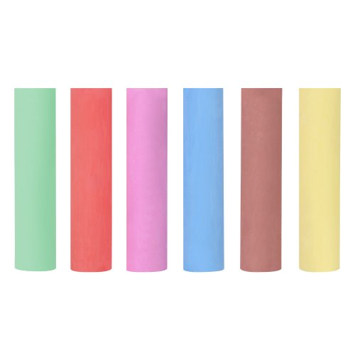 - Praktické balení: Sada 6 barevných kříd (červená, hnědá, žlutá, zelená, modrá, růžová) je uložena v praktickém balení pro snadné skladování a přenášení.
