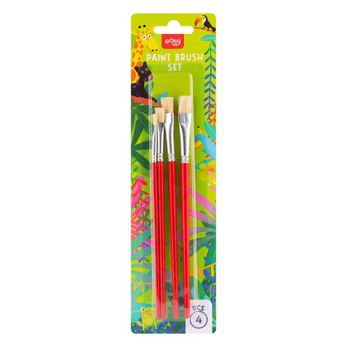 Díky sadě školních štětců Easy Kids bude malování potěšením. Sada obsahuje 4 ploché štětce ve velikostech: 4 mm, 6 mm, 8 mm a 10 mm. Štětiny jsou vyrobeny z přírodního materiálu.