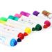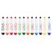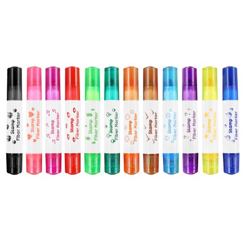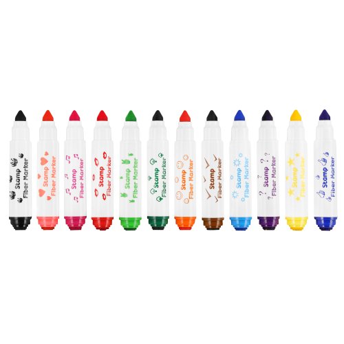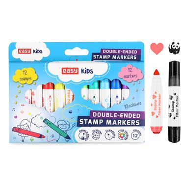 Fixy EASY Kids STAMP mají dvě koncovky - na jedné straně se nachází hrot klasického fixu a na druhé straně razítko ve stejné barvě jako fix. Každé razítko má jiný vzor a barvu. Sada fixů obsahuje celkem 12 fixů v živých barvách a 12 různých vzorů razítek. Každé razítko je originální!