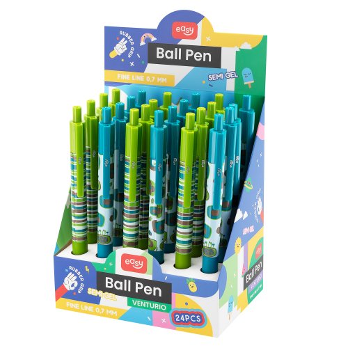 V sérii propisek EASY VENTURIO se nachází speciální náplň se semi-gelovou konzistencí v klasické, modré barvě. Tato náplň zajišťuje pohodlné vedení kuličkového pera po papíru při uchování parametrů běžné náplně. Pevná koncovka umožňuje provádění tenkých, přesných čar.