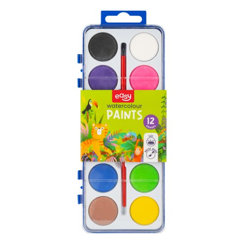 Vodové barvy EASY Kids jsou ideální pro domácí tvoření i školní výtvarnou výchovu. Jejich pevná konzistence se snadno rozpouští vodou a umožňuje vytvářet krásné a jemné obrazy. Barvy se nejlépe nanášejí štětcem. Pro tenké linky zvolte štěteček s malým průměrem, pro vybarvování ploch pak plochý štětec.