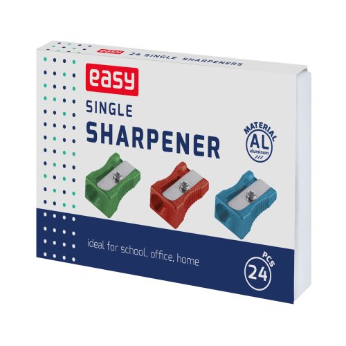 jednodílné ořezávátko EASY je vyrobeno z odolného materiálu - hliník. Použitý materiál zaručuje vysokou odolnost a dlouhou životnost ořezávátka. Tento model jednodílného ořezávátka EASY je ideální pro ostření grafitových tužek a pastelek se standartním průměrem 8 mm.