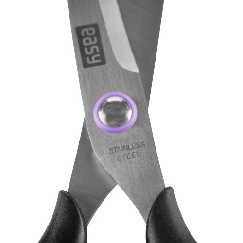 Nůžky EASY jsou ideální pro starší školáky. Průřez otvoru úchytu je přizpůsoben velikosti dětské ruky, což zajišťuje pohodlné a pevné uchopení. Měkký gumový povrch rukojetí zabraňuje klouzání a minimalizuje otlaky i při dlouhodobém používání. Kulaté koncovky ostří zajišťují maximální bezpečnost a minimalizují riziko poranění.