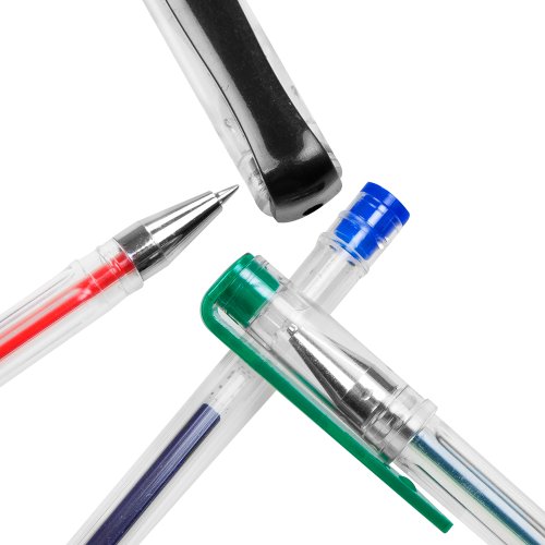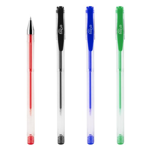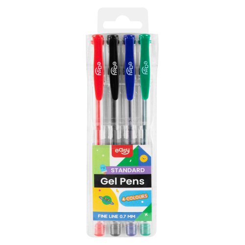 Sada 4 gelových per EASY STANDARD v základních barvách - modrá, černá, červená a zelená, je ideální jak do domácnosti, tak školy či kanceláře.