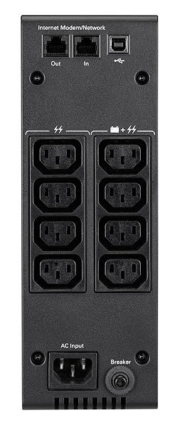 VÝSTUP Kapacita výstupního výkonu [W]: 600 Kapacita výstupního výkonu [VA]: 1000 Jmenovité výstupní napětí [V]: 230 Topologie: Interaktivní UPS (AVR se zvyšováním + snižováním napětí) Výstupní přípojky: (4) IEC-320-C13, (4) IEC-320-C13 surge only