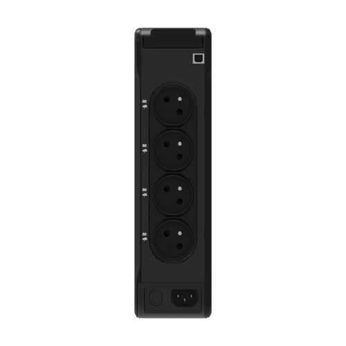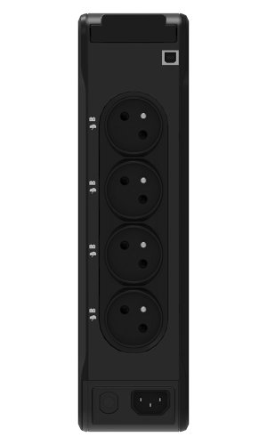 Zdroj je vybaven 4 zásuvkami s ochranou proti přepětí a záložním napájením a 4 zásuvkami pouze s ochranou proti přepětí ve francouzském standardu (FR). Díky elegantnímu a kompaktnímu designu se zdroj hodí do jakéhokoliv prostředí - můžete jej umístit horizontálně, vertikálně nebo s volitelným příslušenstvím i na stěnu či do racku.