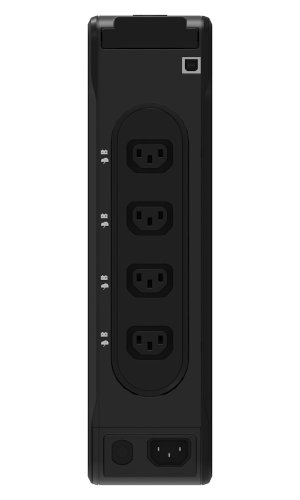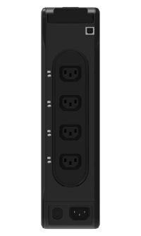 Zdroj je vybaven 4 zásuvkami s ochranou proti přepětí a záložním napájením a 4 zásuvkami pouze s ochranou proti přepětí dle mezinárodních norem IEC. Díky elegantnímu a kompaktnímu designu se zdroj hodí do jakéhokoliv prostředí - můžete jej umístit horizontálně, vertikálně nebo s volitelným příslušenstvím i na stěnu či do racku.