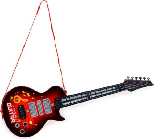 Má vaše dítě rádo hudbu a chtělo by se stát skutečným Rockmanem? Tato elektrická kytara v něm vzbudí opravdovou vášeň a bude vhodným dárkem pro každého malého hudebníka. Kytara má 4 nylonové struny . Tlačítky lze aktivovat různé melodie a zvuky . Barevné LED osvětlení je posledním, ale v neposlední řadě důležitým prvkem této jedinečné kytary.