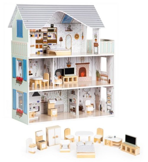 Rezidence Emma je fantastický nápad na dárek, který můžete dát svému dítěti. Snem každé dívky je, aby si mohla hrát s panenkami ve svém domečku. Díky tlumeným a dobře zvoleným barvám bude dům vypadat skvěle nejen v dětském pokoji, ale také v obývacím pokoji a vzbudí potěšení všech členů domácnosti. Místnosti domu byly navrženy tak, aby byly prostorné a umožňovaly i hru s velkými panenkami. Celý dům má 3 podlaží a celkem 5 pokojů. Každý pokoj byl dokončen v jiném stylu, přičemž výzdoba a nábytek odpovídají charakteru a účelu místnosti. Nic však nebrání tomu, aby si vaše dítě hrálo na interiérového designéra a zařídilo si vše po svém. Všechny prvky lze libovolně odstraňovat a přesouvat bez jakýchkoli omezení. Specifikace produktu: