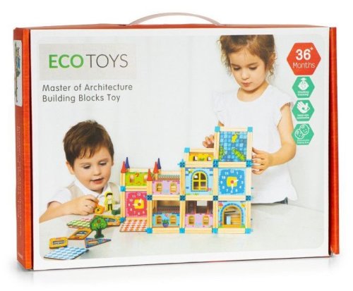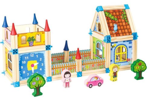 Dřevěné kostky jsou ideální pro děti, dokonce i ty velmi malé - díky svému tvaru a velikosti neohrožují jejich zdraví a zároveň umožňují rozvoj manuálních dovedností, prostorové představivosti a schopnosti vytvářet první struktury. Všechny prvky jsou natřeny pro děti bezpečnými a ekologickými barvami, takže se nemusíte bát o zdraví svého dítěte. Sada umožňuje volně kombinovat a vytvářet originální konstrukce, díky nimž Vaše batole rozvíjí svou kreativitu, představivost a manuální dovednosti. Sada obsahuje 128 prvků , kostky s obrázky postav, aut a stromů.