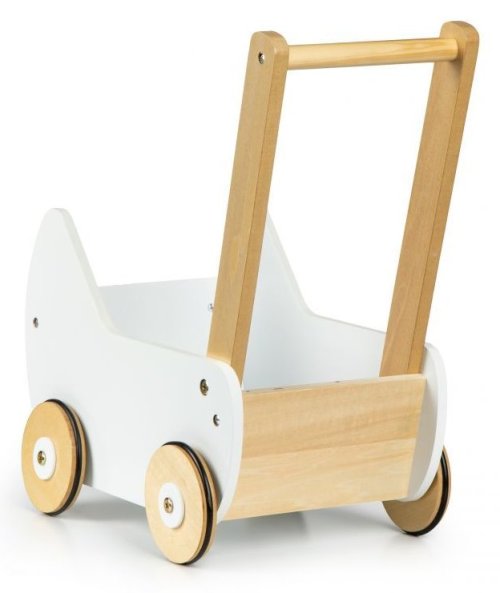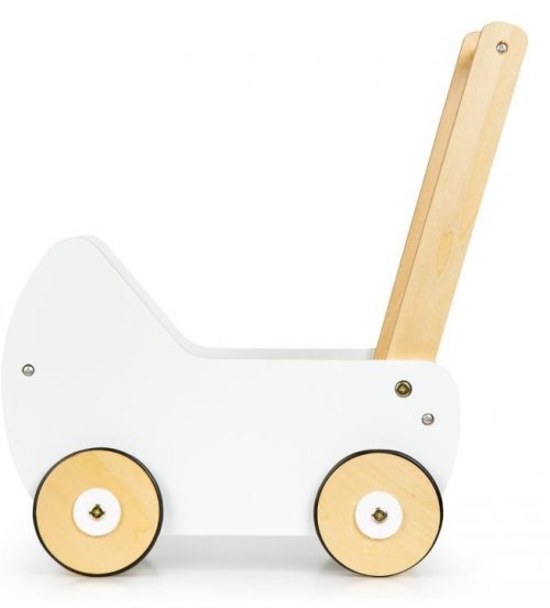 Dětský kočárek pro panenky, plyšová zvířátka a další hračky z kvalitního dřevěného materiálu. Kočárek v bílém provedení má rozměry 41 x 39 x 23,5 cm. Poznámka: Dodáváno v kartonové krabici v rozloženém stavu.