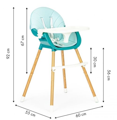 Moderní jídelní židlička 2v1 je vyrobená z kvalitního materiálu. Stolička je vhodná pro děti od 6 do 36 měsíců. Může být sestavena ve dvou výškách. Výhody židličky: