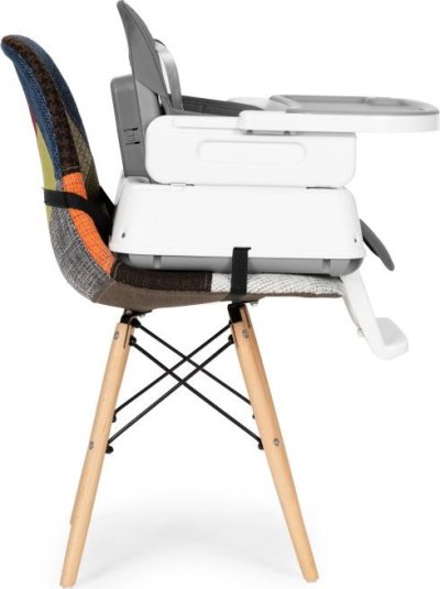 Tato moderní jídelní židlička může být sestavena ve třech variantách - vysoká židlička, nízká židlička a sedák připevněný ke klasické židli. Výhody židličky: