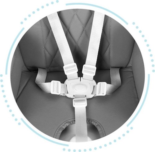 stabilní konstrukce kovové nohy praktická opěrka nohou odnímatelný a nastavitelný plastový pult pohodlné sedátko se zábranou proti sesunutí 5-bodové bezpečnostní pásy odnímatelný potah z ekokůže protiskluzové nožky, které navíc chrání podlahu před poškrábáním snadno skladovatelná, lze složit do kompaktní velikosti možnost umístění a připevnění ke standardní židli
