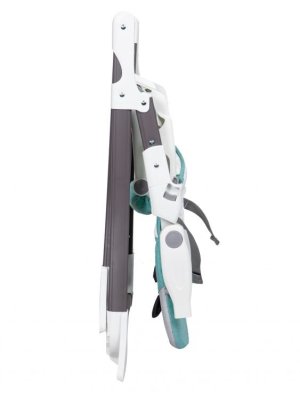 jednoduchý skládací systém 3-bodové bezpečnostní pásy odnímatelný dvojitý tácek nastavitelná opěrka nohou ochrana proti sklouznutí dítěte stabilní konstrukce