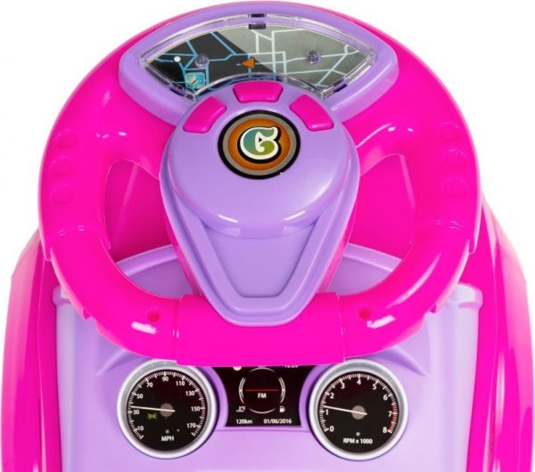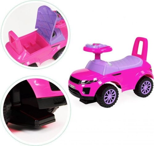 Hračka rozvíjí motoriku, vnímavost a učí děti základy bezpečného pohybu mimo domov. Úložný prostor pod sedadlem, pohodlná opěrka zad. Autíčko díky multimediálnímu volantu upoutá pozornost nejmenších dětí a rychle se tak z něj stane oblíbená hračka. Na volantu jsou 3 tlačítka pro přehrávání zvuků.