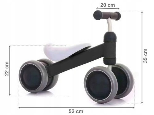 Výhody výrobku: - lehká a pevná konstrukce - rám výrobku je vyroben z odolného plastu - řídítka potažená protiskluzovou pěnou - zámek otočení řídítek - měkké a pohodlné sedátko - kola s vysoce kvalitního plastu s gumovou vrstvou, která neklouže a nepoškrábe podlahu - hmotnost odrážedla cca 2 kg - maximální nosnost 20 kg Parametry: - rozměry odrážedla: 52 x 35 x 22 cm - výška sedátka: 22 cm - výška řídítek: 35 cm - šířka řídítek: 20 cm Dodáváno v rozloženém stavu v kartonové krabici. Jednoduchá montáž. Obrázkový návod je součástí balení.