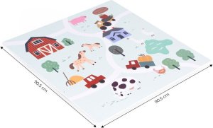 Pěnové puzzle s potiskem cestiček, zvířat a statku pro děti od 3 let. Balení obsahuje 9 čtvercových dílů a 12 okrajových dílků. Bezpečná a měkká podložka je omyvatelná, tlumí hluk a izoluje od chladu, je proto ideální jako hrací koberec nejen do dětských pokojů. Puzzle má vroubkovaný povrch s barevným potiskem. Tloušťka pěnového puzzle je 1 cm. Rozměr složeného puzzle 90,5 x 90,5 cm. Baleno v plastovém obalu s praktickým uchem pro pohodlné přenášení a zapínáním na zip.