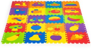 Pěnové puzzle s motivem dopravních prostředků a ovoce pro děti od 3 let. Puzzle má vroubkovaný povrch a v každém dílku jsou vyjímatelné dílky. Bezpečná a měkká podložka je omyvatelná, tlumí hluk a izoluje od chladu, je proto ideální jako hrací koberec nejen do dětských pokojů. Tloušťka pěnového puzzle je 0,9 cm. Velikost jednoho dílu je 29 x 29 cm (měřeno od zubu po výřez) Rozměr složeného puzzle cca 148 x 119 cm