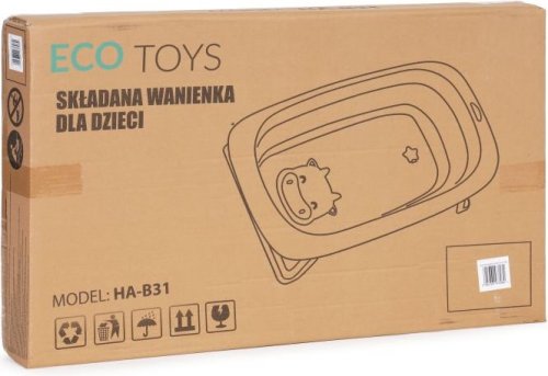 vhodná do koupelny nebo na jakýkoli rovný a stabilní povrch, vybaveno zátkou pro snadné vypouštění použité vody bez nutnosti zvedání vaničky, teploměr zabudovaný v zátce - jestliže je voda příliš horká zátka změní barvu, skládání do kompaktní velikosti (lze uložit do zásuvky, skříně nebo zavěsit na zeď), snadné přenášení, vhodná na cesty. protiskluzové nožičky