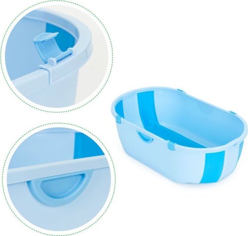 Vhodná do koupelny nebo na jakýkoli rovný a stabilní povrch, vybaveno zátkou pro snadné vypouštění použité vody bez nutnosti zvedání vaničky, teploměr zabudovaný v zátce - jestliže je voda příliš horká zátka změní barvu, po obou stranách jsou pevná madla, snadné přenášení, vhodná na cesty, skládání do kompaktní velikosti, stabilní kontrukce.