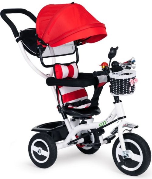 Bezpečná tříkolka s vodící tyčí a stříškou pro děti od 12 měsíců. Tříkolku lze používat jako vozík, kdy můžete dítě pouze tlačit pomocí vodící tyče. Nohy dítěte jsou přitom umístěny na bezpečnostních stupačkách. Výhody tříkolky: