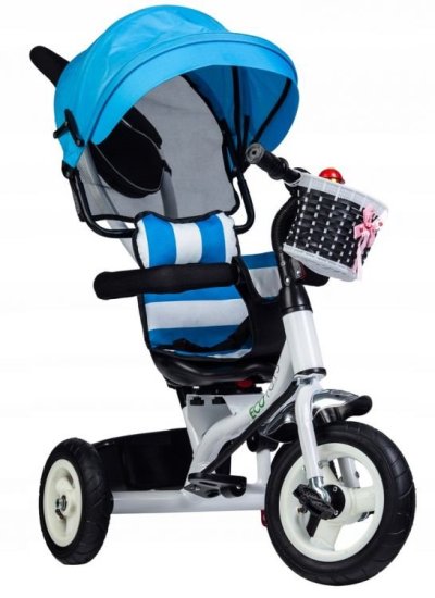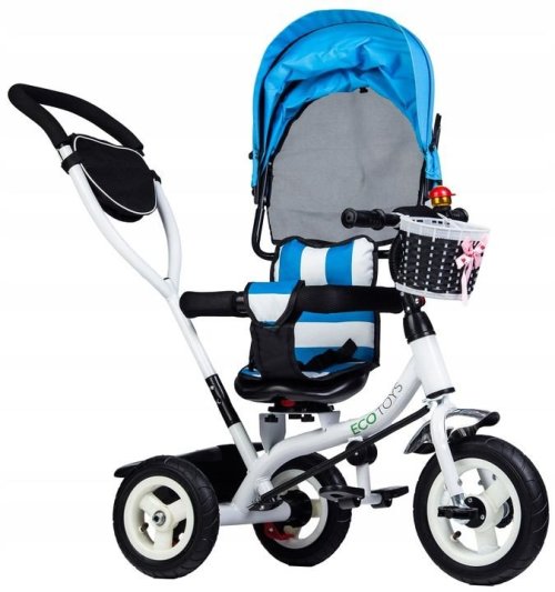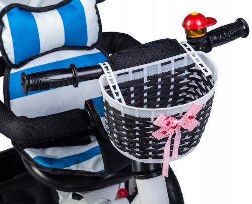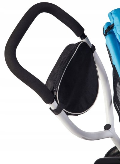 Bezpečná tříkolka s vodící tyčí a stříškou pro děti od 12 měsíců. Tříkolku lze používat jako vozík, kdy můžete dítě pouze tlačit pomocí vodící tyče. Nohy dítěte jsou přitom umístěny na bezpečnostních stupátkách. V závislosti na věku a samostatnosti vašeho dítěte můžete postupně odstranit jednotlivé bezpečnostní prvky, stříšku, zábrany, vodící tyč aj. Výhody tříkolky: