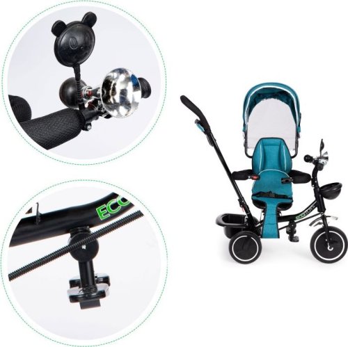 Bezpečná tříkolka s vodící tyčí a stříškou pro děti od 12 měsíců. Tříkolku lze používat jako vozík, kdy můžete dítě pouze tlačit pomocí vodící tyče. Nohy dítěte jsou přitom umístěny na bezpečnostních stupačkách. Výhody tříkolky: