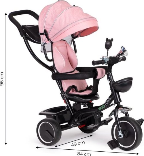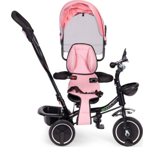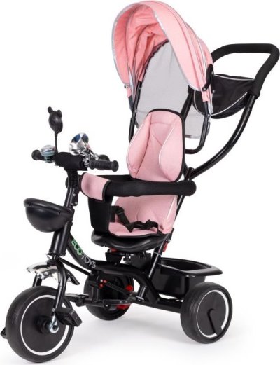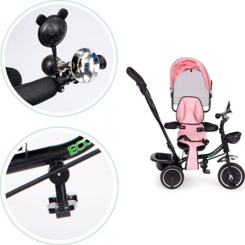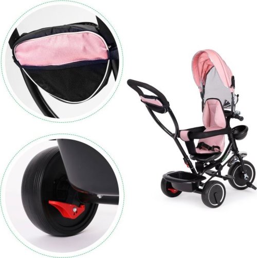 Bezpečná tříkolka s vodící tyčí a stříškou pro děti od 12 měsíců. Tříkolku lze používat jako vozík, kdy můžete dítě pouze tlačit pomocí vodící tyče. Nohy dítěte jsou přitom umístěny na bezpečnostních stupačkách. Výhody tříkolky: