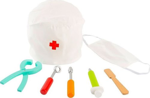 Sada obsahuje : 5 různých dentálních nástrojů, čepici a roušku. Rozměry taštičky: 17 x 7 x 15 cm Splňuje normu EN71 .