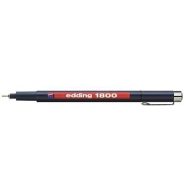 Popisovač EDDING 1800, černý s šíří hrotu 0,1 mm má velmi jemný hrot pro vynikající výsledky. Pro psaní a skicování, např. pro práci s technickou dokumentací. Použijte ho ale i pro Vaše tvoření ve volném čase. Pigmentový inkoust, který vyniká zejména pro svou stálobarevnost a vysokou trvanlivost. Odolný vůči rozmazání a vodě. Díky speciálnímu inkoustu nedochází k prosakování skrz papír. Rychleschnoucí a neutrální vůně. Má plastový kulatý hrot s kovovým rámečkem. Víčko fixu má klip pro praktické zachycení, např. k oděvu nebo notesu.
