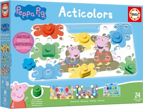 Pomáhá učit se základní barvy a rozpoznávat tvary hravou formou. Podporuje rozvoj jemné motoriky, vizuální diskriminace a prostorové orientace. Hru lze hrát třemi různými způsoby – poskytuje variabilitu a udržuje zájem dítěte. Obsah balení: plastová podložka s madlem, 8 oboustranných předloh, 44 dílků v různých tvarech a barvách. Vzdělávací hra pro děti od 2 do 4 let.